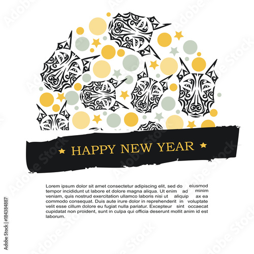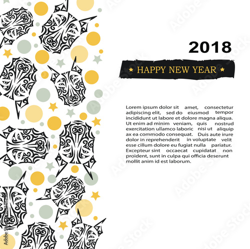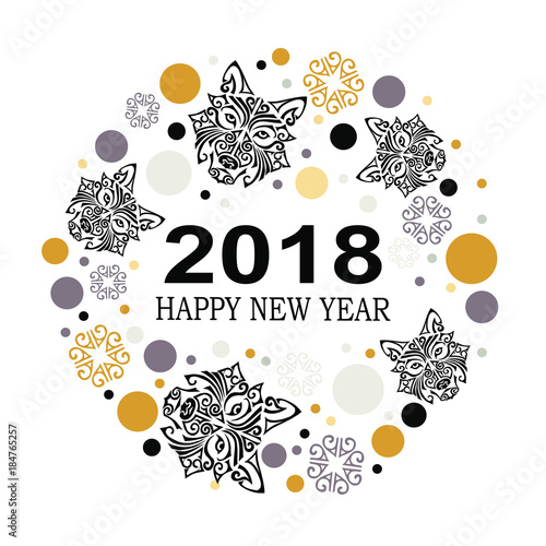 2018 New Year Card With Black Dog S Or Wolf S Head Stylized Maori